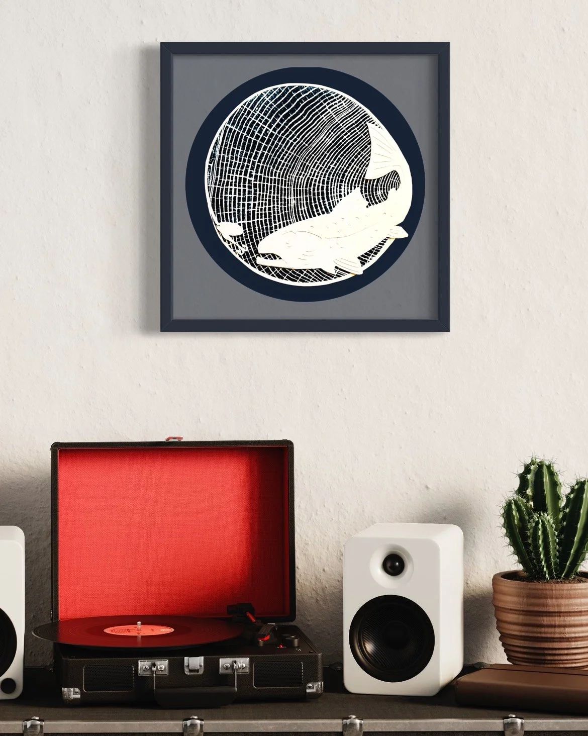 When you can’t imagine buying another lure for the tackle box. This wife decided to surround her husband with art she new they would both love.